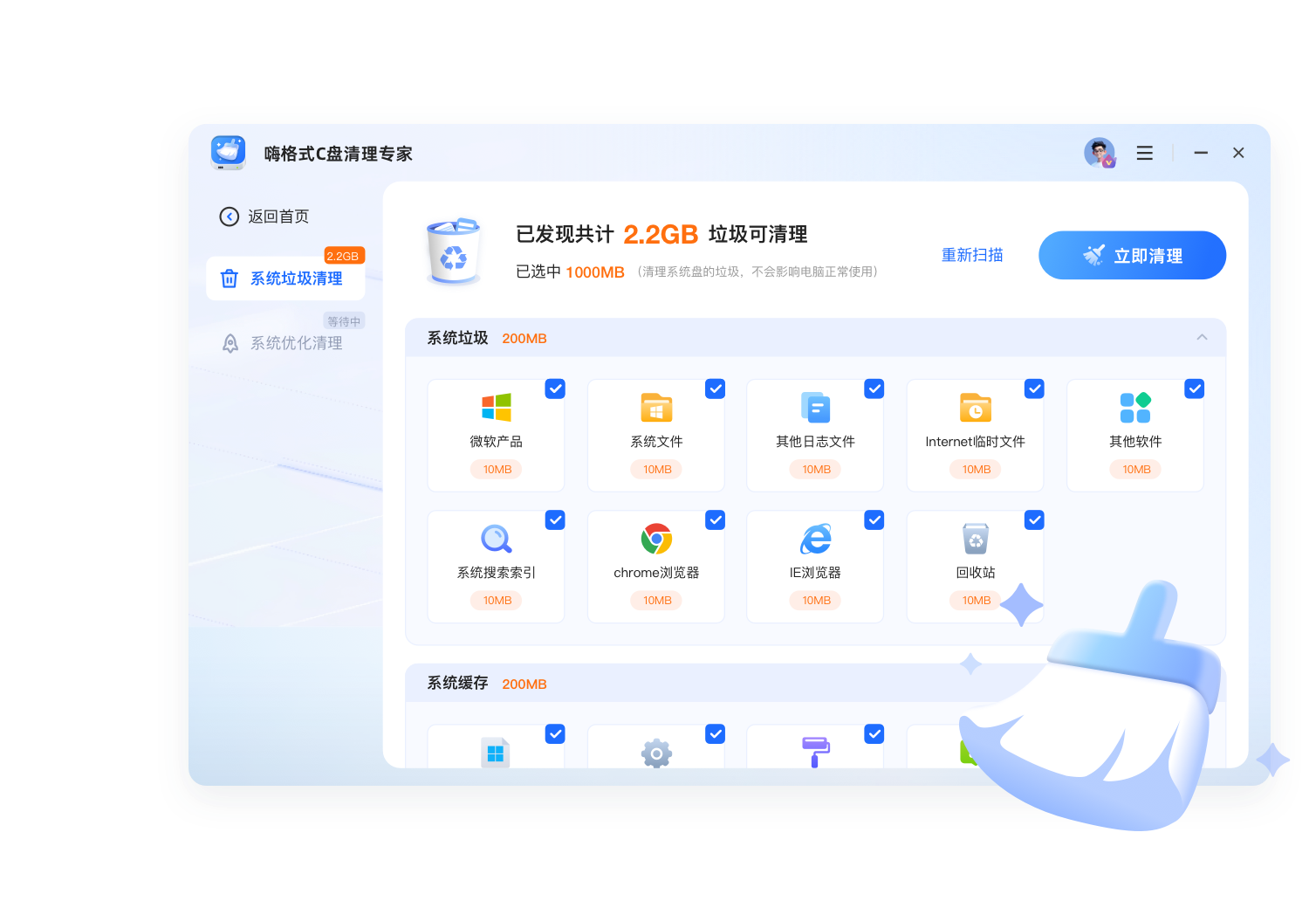 智能识别系统文件,只清理垃圾,绝不误删重要数据